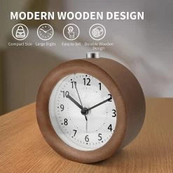 Battery Operated Morning Alarm Clock,aboveClock Wooden Alarm Clock Con Snooze Function,Travel Analog