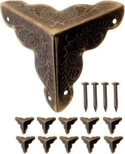 10 Corners For Furniture, Antique Design, Metal, Edge Protection Corners For Crates And Furniture In