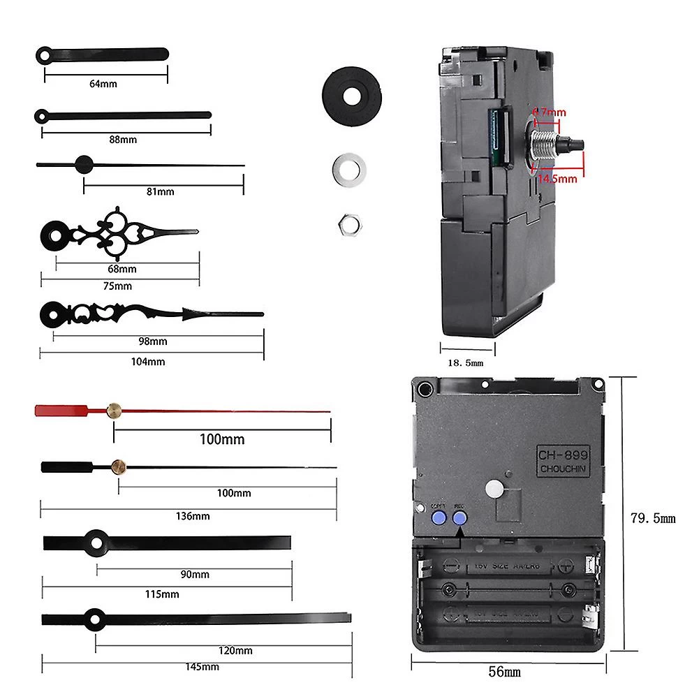 Movement shaft length: total shaft length 14.5mm, thread height 7mm, suitable for 1-3mm thick clock panels