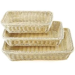 MULTIFUNCTIONAL: With broad applicability, these imitation rattan baskets can be seen everywhere from bakeries, fruit and vegetable shops, supermarkets to high-end restaurants for organizing and displaying kinds of food.
