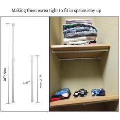 6 Pack Tension Rods, Adjustable Spring Cupboard Bars Rod Curtain Rods White