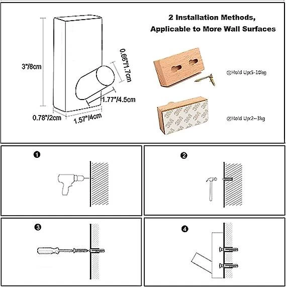 EASY TO INSTALL AND STRONG: Just drill a hole and insert a wall anchor and screw it. Hold up to 10~33lbs/2~15Kg, better hardware, sturdier and stronger.