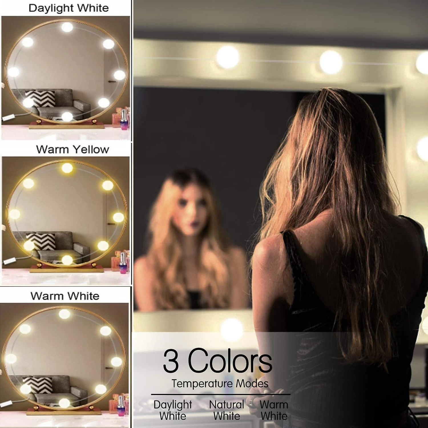 Makeup Mirror Light, provide white lighting closely natural sunlight, soft color-correct lighting for makeup, provide plenty on brightness to makeup in dark, the light adopts high-end LED lamp beads, the light is soft and not dazzling