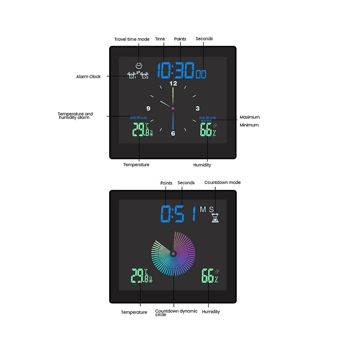 Indoor humidity (measurement range: 20%-99%) Refresh time: . Resolution: 1%