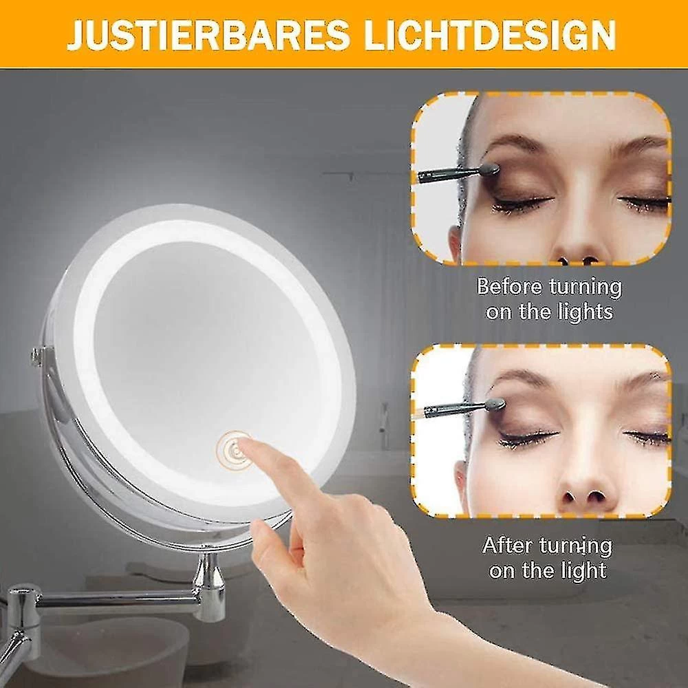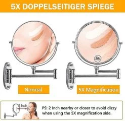 High Magnification Wall Illuminated Makeup Mirror With The 5X Magnifying Mirror, You Can See The Smallest Details For A Flawless Facial, Ideal For Focusing On Specific Areas Such As Makeup Applications And Precise Tweezing.