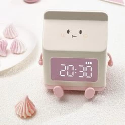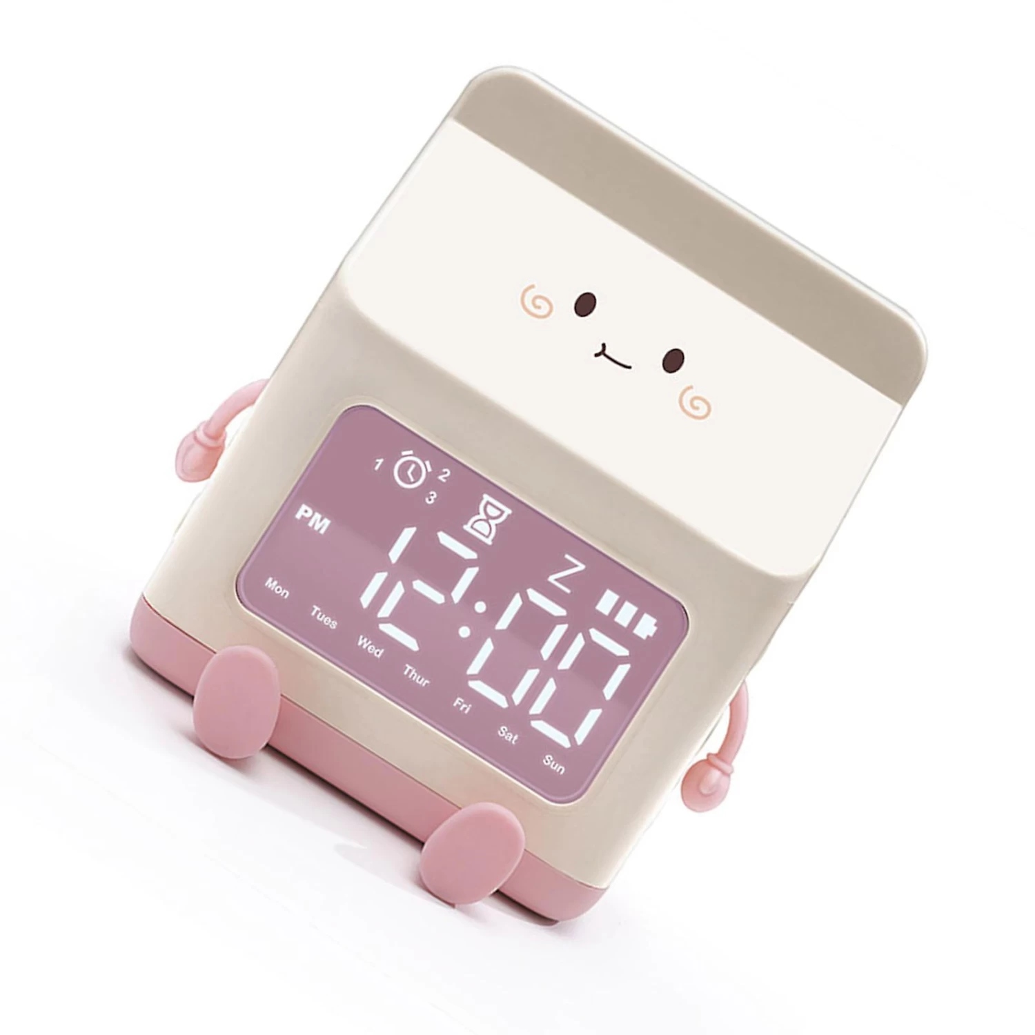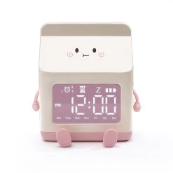 1Cute Shape: This alarm clock uses a cute cartoon design, fun milk carton shape, to attract the attention of children.