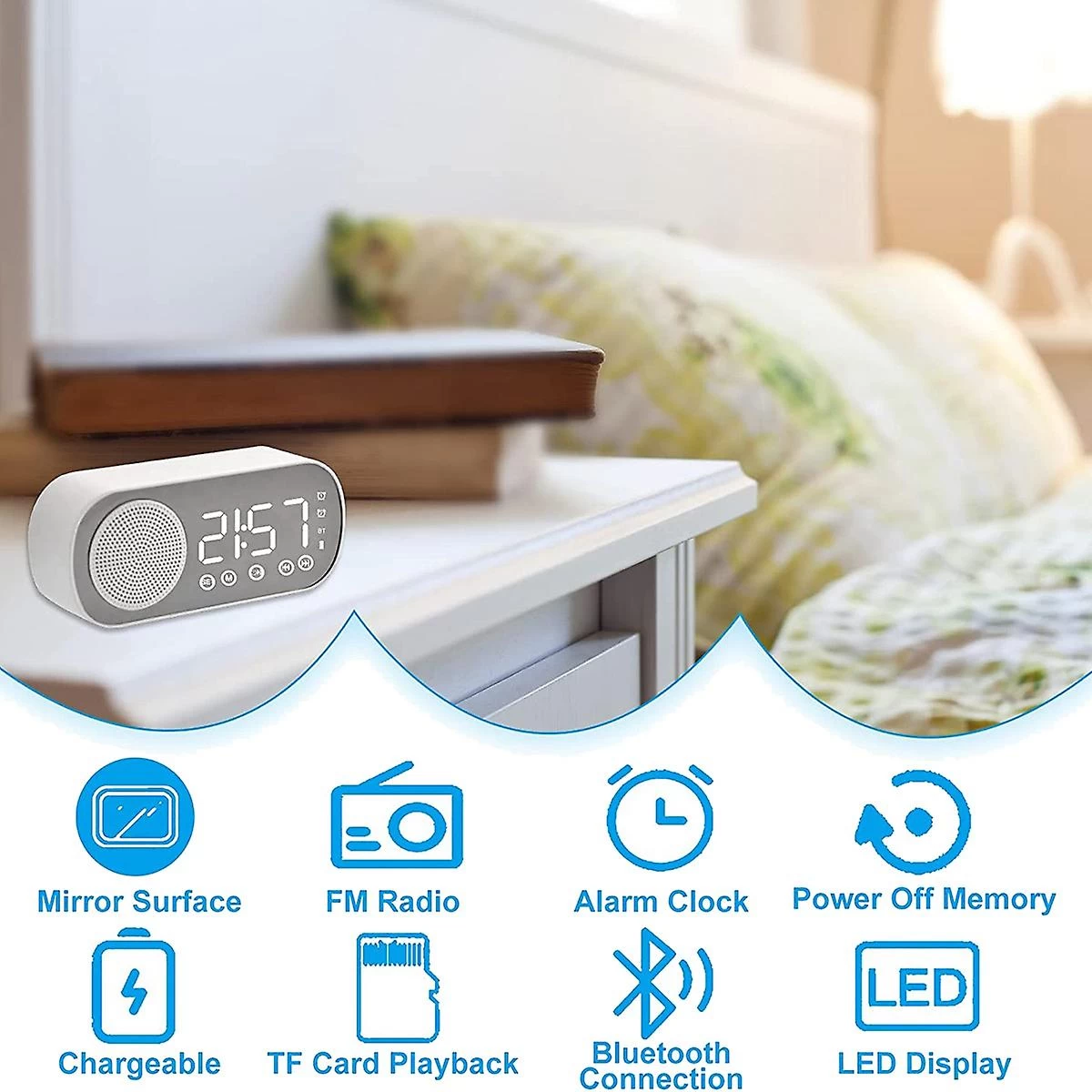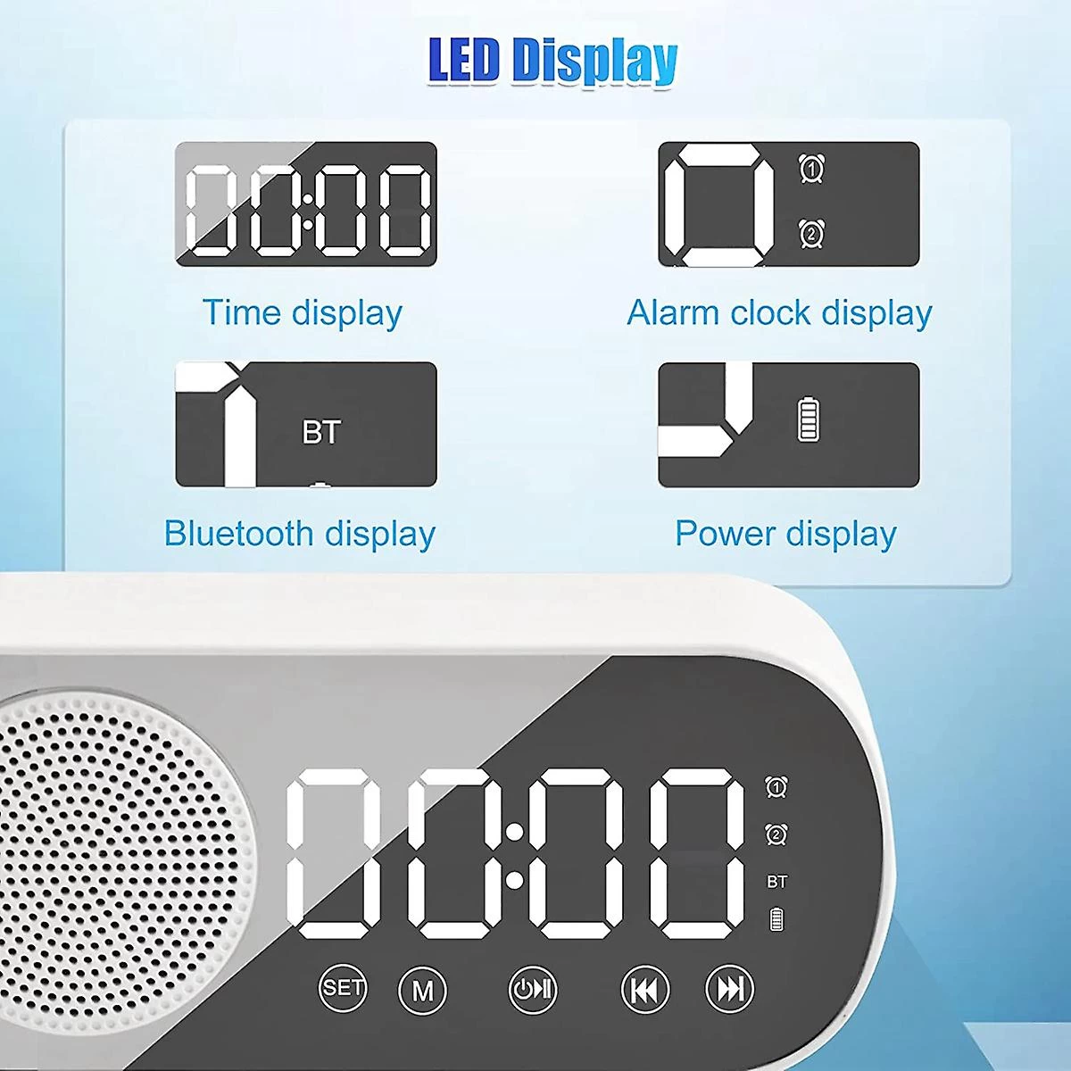 [Dimming LED Display]This bluetooth speaker digital electronic alarm clock has an LED display, the time is clear at a glance.