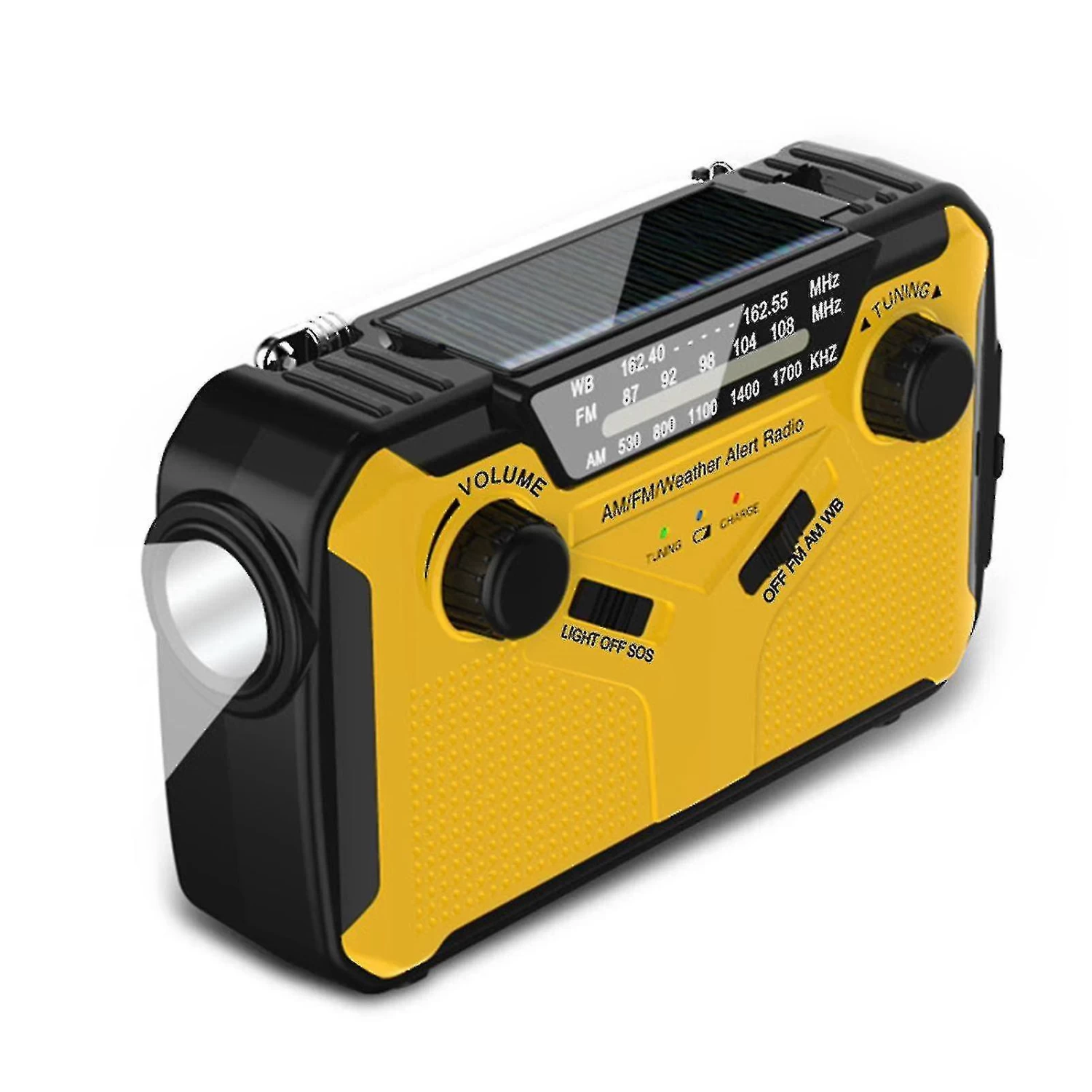 2. Solar panel, manual charging: not only can be charged directly through the USB data cable, but also can be charged through the solar panel and handle. Provides important evacuation information when outdoors or in a disaster.