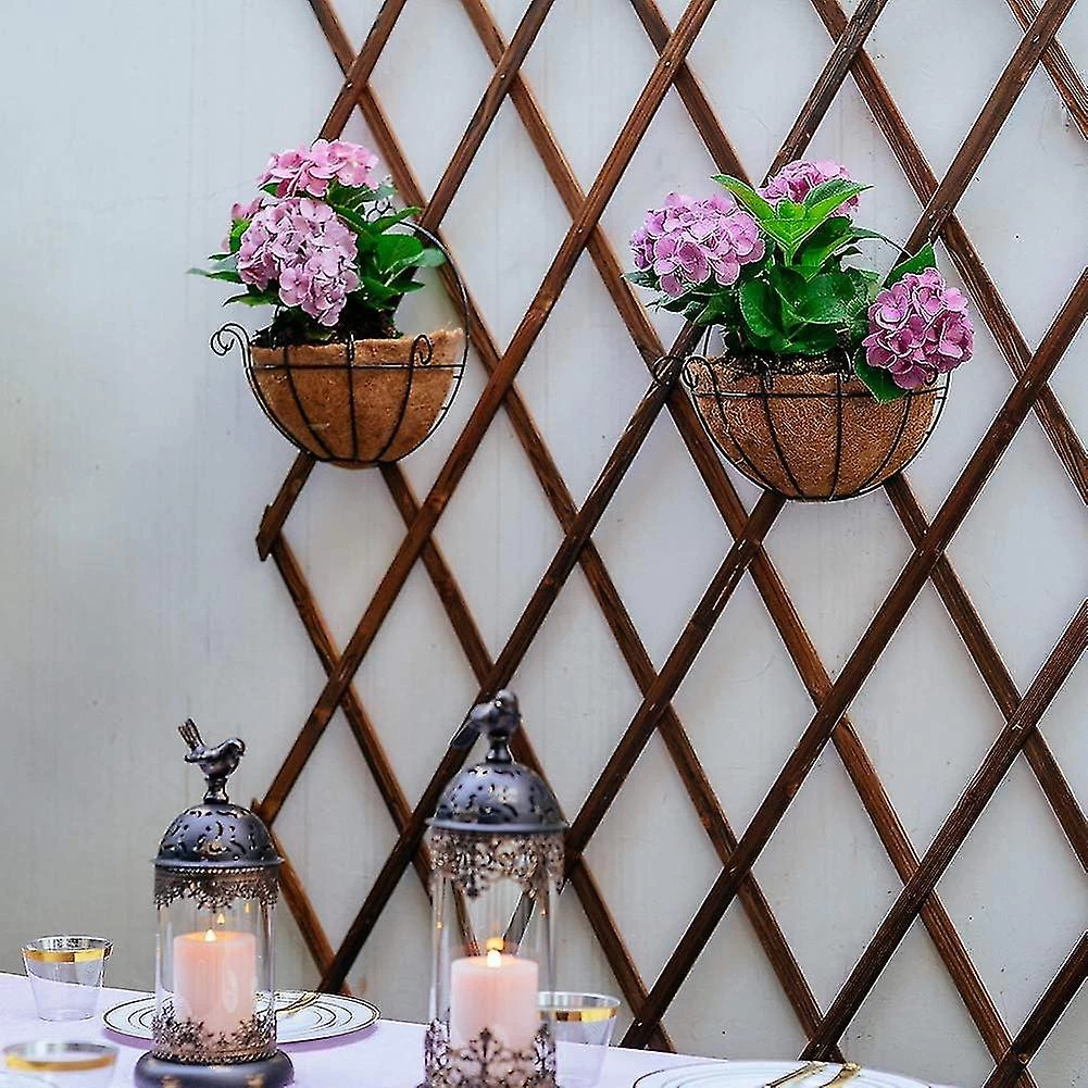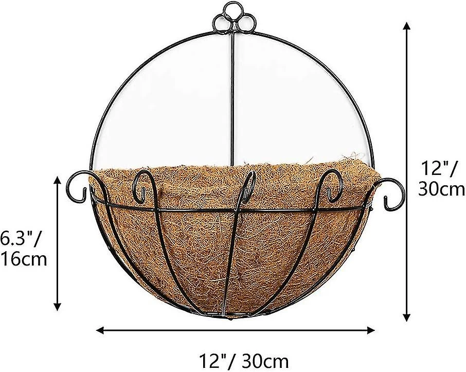 Total height: 12″/30cm Width: 12″/30cm Convenient match Coir liners help roots breathe and let drain off excess water, much better than plastic pots.We also match the hook in the package. Rustproof and sturdy Rod construction Rust resistant steel. Safe to use outdoors. Steel rod is heavy and will last. Easy to fill and plant. With coir liners These hangers with the coir liner look great when hanging. Radius of the coir liner: 6″/15cm. HOW TO USE IT BETTER plastic bag. Lay the plastic bag flat inside the liner. Add the fertilizer to the hanging pot.