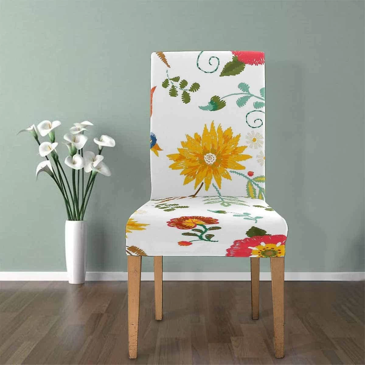 Washable, polyester material, milk fiber fabric.Universal fit size.Fit for most chair size. Chair back length 14-20 inch35x50 cm, back height 20-25 inch50x63 cm, seat length 16-20 inch40x50 cm, seat width 14-20 inch35x50 cm.The chair covers safeguard your dining chairs from stains, dirt and also can prevent your chair from kids scribble or pet scratch and bite.The chair covers with bright colors and fashionable patterns is perfect for decorating your chair.Stretch Chair Slipcovers for Decorative ,Seat Protector is Removable and Washable .